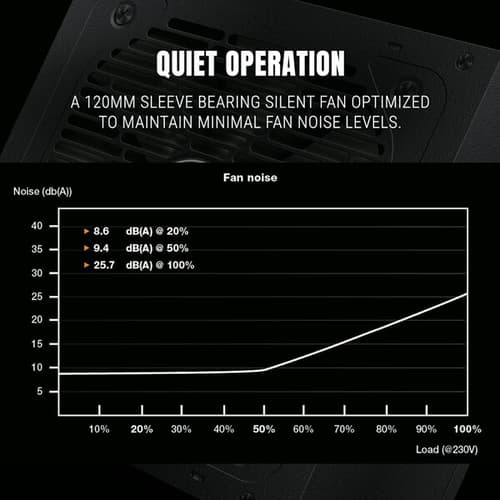 Silent 120mm fan – The 120mm fan spins consistently yet quietly to keep the unit cool even under full load & is rated for 100,000 hours of lifespan!